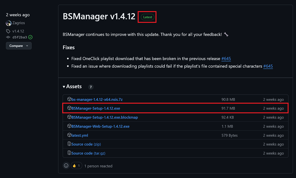 - First, you'll need to download the latest release from the BSManager GitHub releases page.