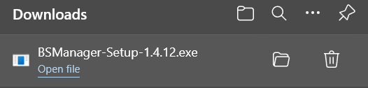 - Click on the downloaded file to execute the installer. BSManager will start itself once the download completes.