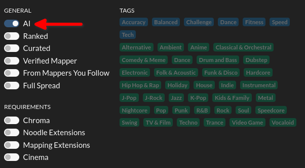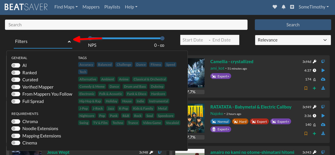If you ever wondered where all the bot maps are that people talk about, then you may not be aware of the fact that BeatSaver, by default, hides bot maps. If you want to see bot maps as well, you will need to enable that in the filters!