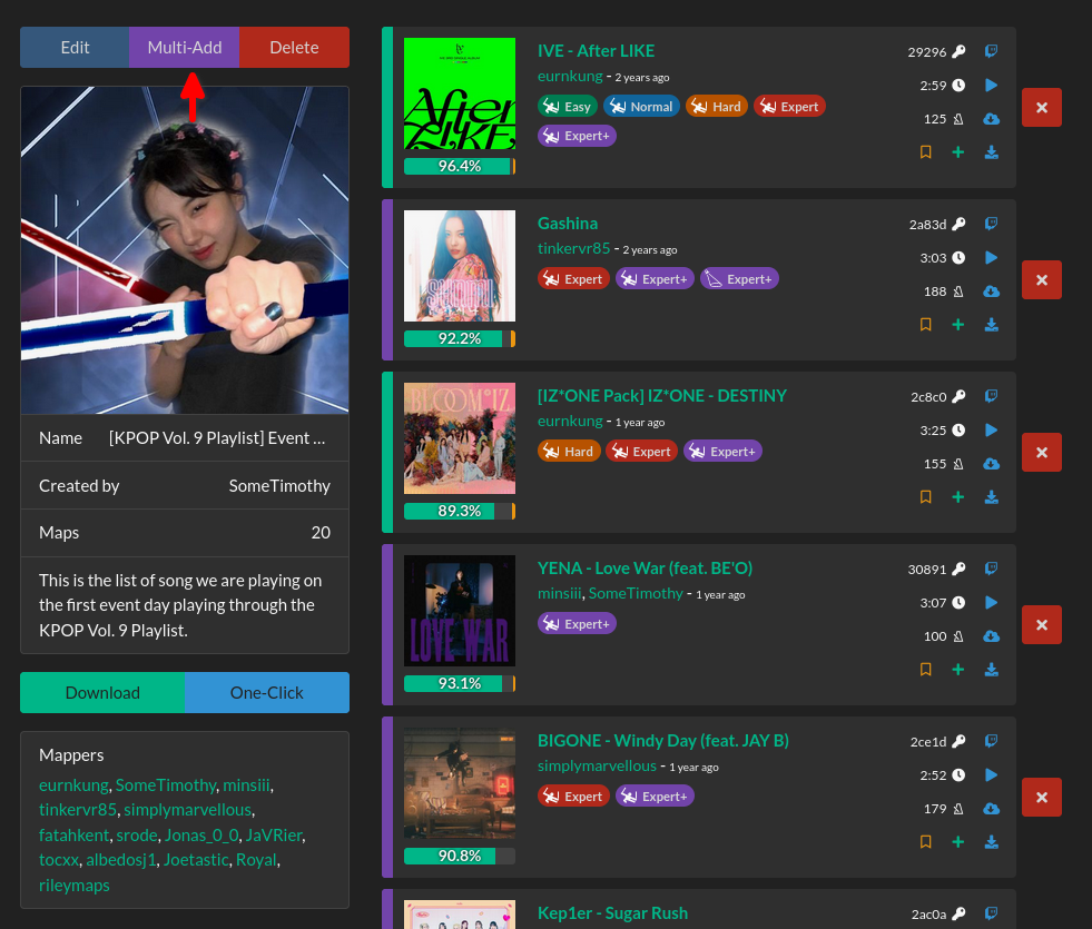 Do not let that fool you! Just add a /add to the end of your bookmark URL and you can still multi-add! For example, if I wanted to do this to my bookmarks, I would end up with: https://beatsaver.com/playlists/97886/add (your URL will have a different playlist ID in the URL so this link will not work for you).